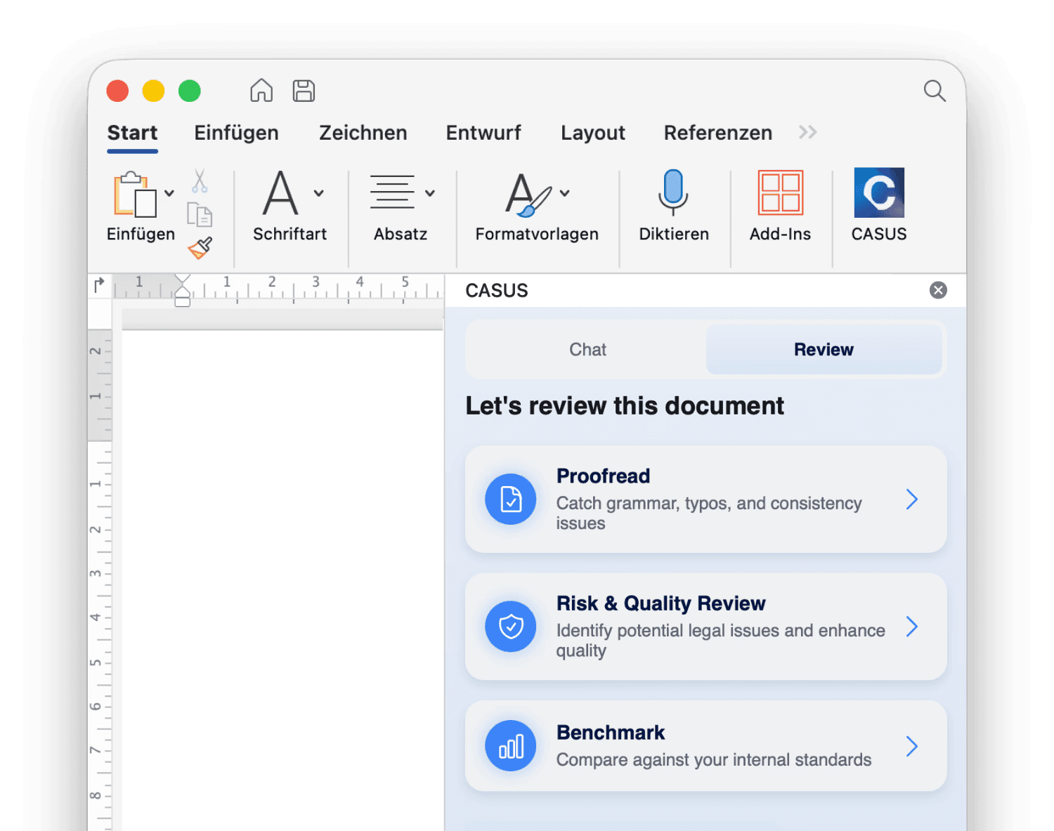 For day-to-day law firm work, a Word-based workflow is often more efficient because placement, formatting, and versioning otherwise cost unnecessary time. If changes can be applied directly in the document, you reduce copy-paste and common formatting errors. A chatbot is still useful when the primary goal is quick questions, summaries, or explanations.